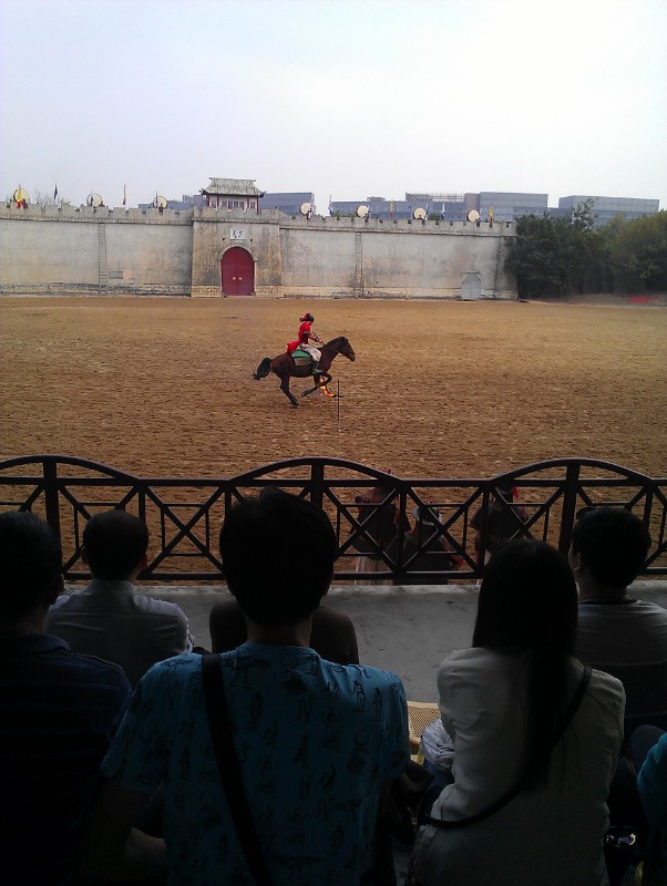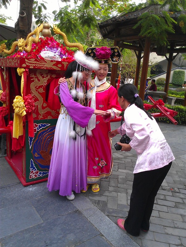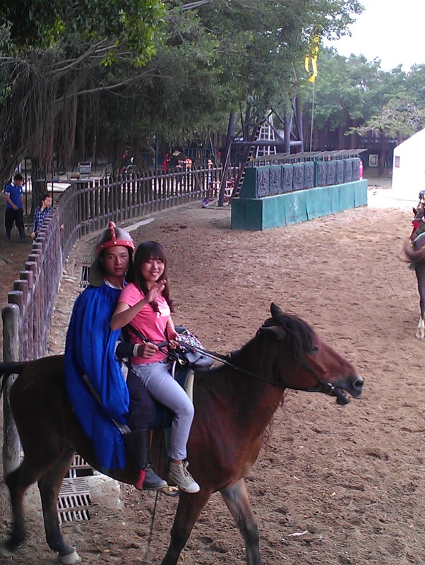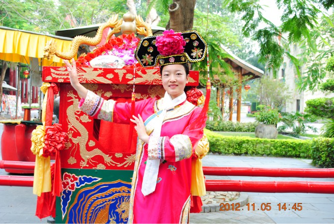世界之窗通過微縮景觀讓我們大開眼界,不僅有世界各地的標(biāo)志性建筑而且融合了多姿多彩的西方文化特色和風(fēng)情。我們?cè)谶@門口拍了張照,便奔到了錦繡中華。園內(nèi)充分展示了中華五千年的文化,其博大精深讓我們嘆為觀止。大街上有粉墨登場(chǎng)的踩著高蹺高調(diào)游行的小丑,街邊有轉(zhuǎn)動(dòng)的水車,有擺著冰糖葫蘆,還有各種有意思的面具和頗具時(shí)代感的工藝品。出于對(duì)藝術(shù)家的尊重,我買了兩個(gè)用銅絲線做成的小腳踏車。其中各種各樣的表演,精彩紛呈。最具代表性的有兩個(gè),露天上演的《金戈戰(zhàn)馬》和室內(nèi)演出的《中國(guó)印象》。在跑馬場(chǎng)上,以古代城樓為實(shí)景,一群英姿颯爽的跑馬溜溜的漢子英勇無(wú)敵,策馬奔騰,飛馳原野。除了情景演義還有各種馬上特技表演。如馬上飛馳交鋒,雙人夾擊交戰(zhàn),側(cè)身飛馬撿哈達(dá),飛馬穿越火線,等驚險(xiǎn)而刺激。整場(chǎng)氣勢(shì)震撼人心,仿佛走到了那戰(zhàn)火紛飛的年月。《中國(guó)印象》則以中國(guó)服飾文化為主題,是一場(chǎng)唯美的視覺盛宴。舞臺(tái)上的美女有著高挑苗條的身段,散發(fā)著東方女性特有的氣質(zhì),他們無(wú)不阿羅多姿,風(fēng)情萬(wàn)種,將中國(guó)古代各段時(shí)期不同地域還有頗具韻味的少數(shù)民族服飾詮釋的淋漓盡致。或可愛俏皮,或優(yōu)雅高貴,或清新亮麗,或妖冶如火。有著西域的神秘色彩,又有著江南的溫柔小情調(diào),更有著皇宮的雍容華貴。性感有如勾人魂魄,動(dòng)感則讓人聞歌起舞。每一個(gè)造型都刻著豐富的文化內(nèi)涵,它代表的是人們對(duì)時(shí)代的認(rèn)同感,對(duì)人性的理解,和對(duì)審美的更高追求。